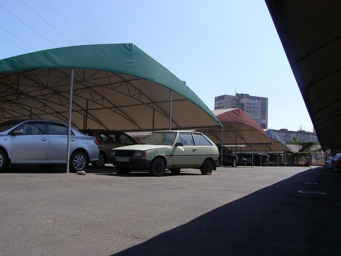 Размеры участков территории, отводимых под открытые автостоянки, ограничения, налагаемые элементами существующей инфраструктуры на проектирование и размещение таких объектов оказывают решающее влияние на содержание технического решения по их возведению, а также устройству для них средств защиты от воздействия атмосферных осадков и других метеофакторов. Мы предлагаем изготовление и монтаж защитных каркасно-тентовых конструкций для индивидуальных и коллективных автостоянок.
